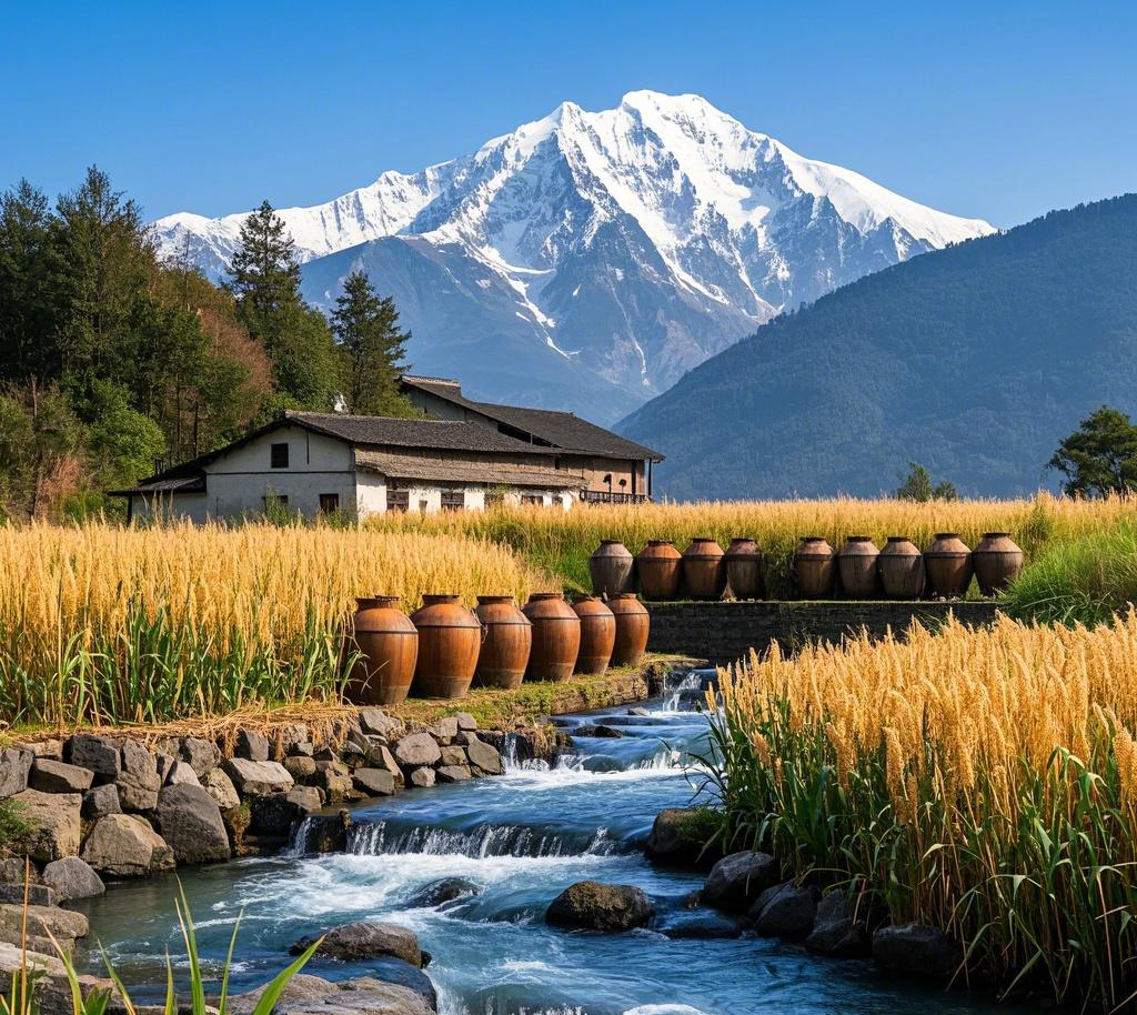 至尊峰的故乡 -- 四川绵竹,酒乡之名震烁古今。和金字塔、玛雅文明一样,坐落在“神秘的北纬30度”上,得天独厚的自然条件,极有利于酿酒微生物的繁衍,是酿造美酒的绝佳地域。